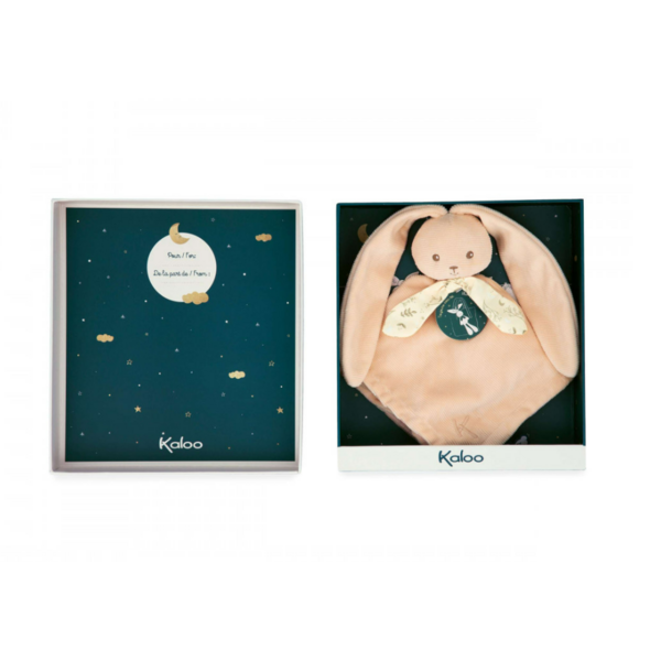 Pour un cadeau de naissance qui reflète vraiment votre affection, ce doudou plat est livré dans une jolie boîte personnalisable, dans laquelle vous pouvez écrire votre message d'amour dans l'espace prévu sous le couvercle. Ce doudou Kaloo est fabriqué en velours et viscose (soie artificielle) et présente de magnifiques détails brodés qui lui confèrent une touche d'élégance. Le rembourrage de la tête est en polyester fabriqué à partir de plastique recyclé. Avec ses dimensions de 30 x 6 x 30 cm, il est le compagnon idéal de votre bébé, à la maison comme en déplacement.