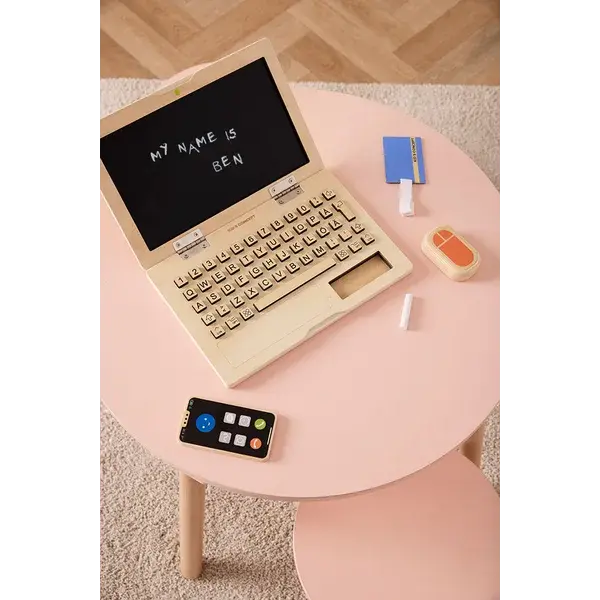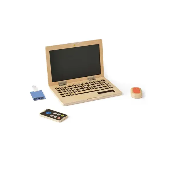 Un ensemble informatique en bois est un jouet idéal pour les jeunes enfants qui aiment imiter les adultes. L'ordinateur portable est doté de touches sur lesquelles on peut appuyer pour s'amuser de manière interactive, ainsi que d'un téléphone portable, d'une souris et d'un badge d'identification. L'écran de l'ordinateur portable sert également de tableau noir, sur lequel les enfants peuvent dessiner et écrire avec de la craie (non fournie). Ce kit de jeu stimule les jeux de bureau imaginatifs et offre aux enfants une façon ludique et captivante de découvrir le monde du travail des adultes.