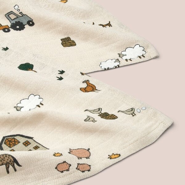 Caractéristiques de ce lot de 2 mousselines Liewood Lewis Couleur Farm/Sandy :