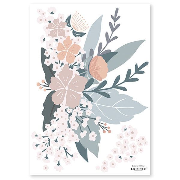 Ces stickers muraux Adèle Flower composition transforment la chambre enfant en une chambre de rêve. Les stickers muraux forment un beau bouquet avec diverses belles fleurs et peuvent être combinés avec d'autres décorations de chambre d'enfants. Un beau thème dans la chambre bébé et enfant. Ces stickers muraux ne devraient certainement pas manquer dans votre chambre!