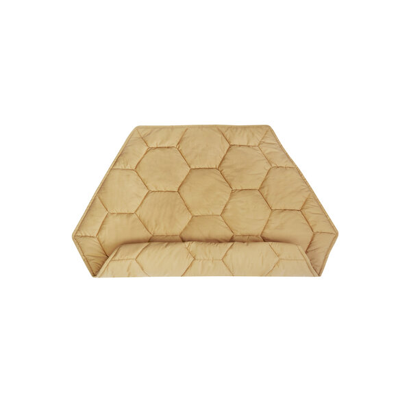 Le tapis d'éveil Nid d'abeille est de forme hexagonale et matelassé selon le motif caractéristique du nid d'abeille. Fabriqué en popeline de coton biologique douce de couleur miel, et rempli de polyfill recyclé doux, le tapis d'éveil est accompagné d'un charmant jouet en forme d'abeille avec papier froissé et hochet à l'intérieur.