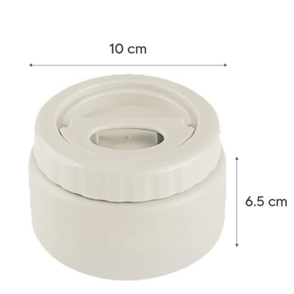 - Conseils d'entretien: laver à la main avec de l'eau chaude savonneuse, après avoir retiré la doublure en silicone. - Laissez sécher à l'air libre pendant la nuit. - Remplissez d'eau chaude/froide pendant 5 minutes et rincez avant de stocker des aliments chauds/froids. - Ne passe pas au congélateur. - Ne convient pas au micro-ondes