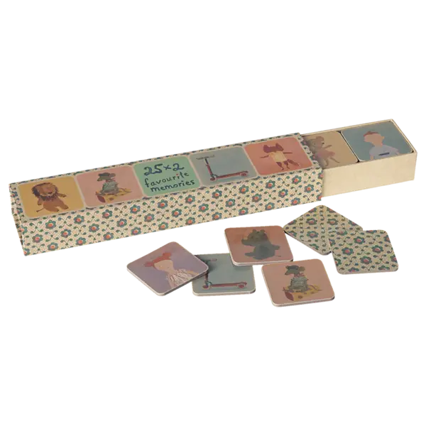 Un jeu de mémoire classique avec 25 illustrations différentes dessinées par Dorthe Mailil. L'inspiration provient de différents objets produits au fil des ans. Le jeu contient 50 cartes (25 jeux).