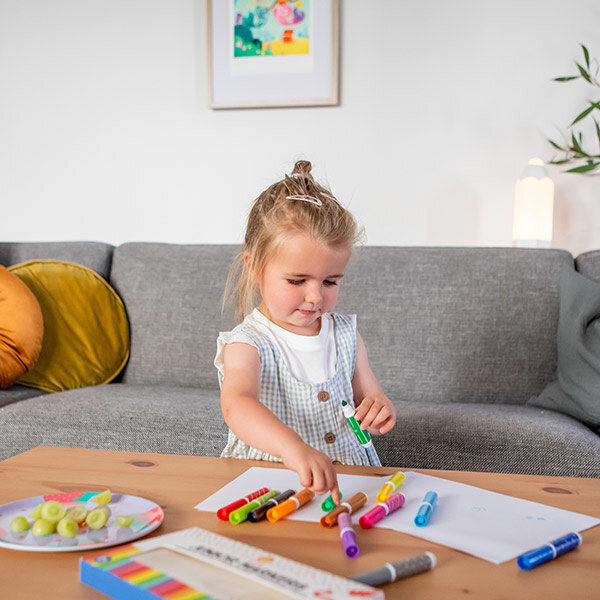 Avec ce lot de 12 marqueurs lavables, les jeunes enfants peuvent réaliser des dessins colorés. Ces marqueurs junior sont spécialement conçus pour les plus petites mains. Ils sont non toxiques et lavables. Idéal pour explorer la créativité tout en pratiquant la prise en pince et la motricité fine.