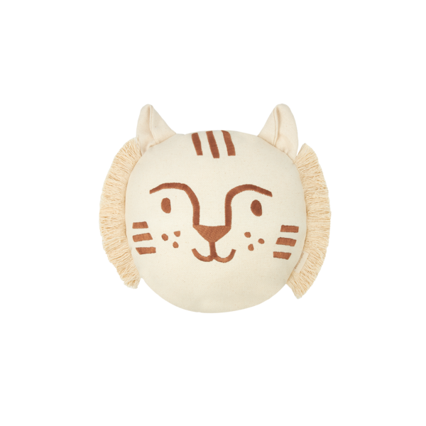 Ce coussin tigre emblématique est le compagnon idéal de toutes les aventures de vos enfants. Nous adorons les franges et le visage endormi subtilement brodé.