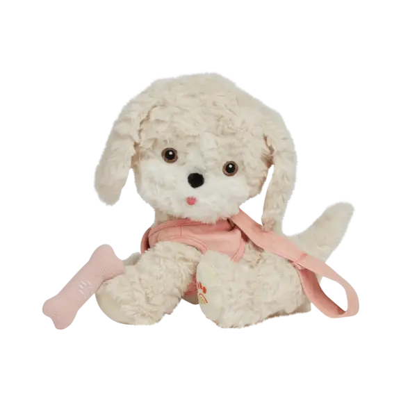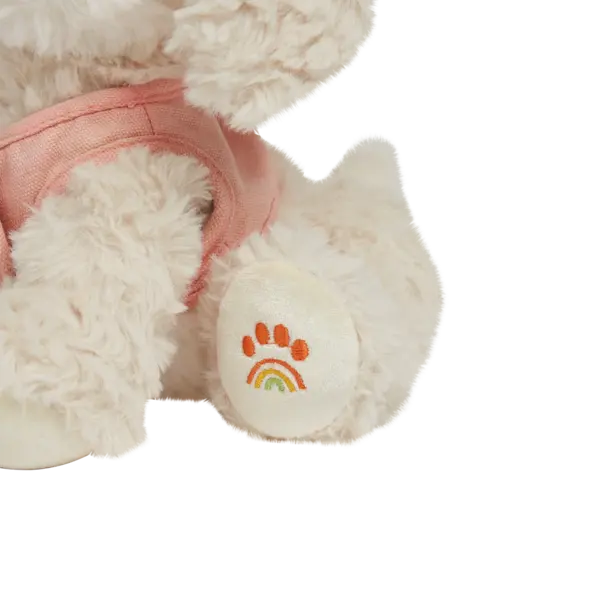 Fabriqué en peluche recyclée douce, avec des boucles tactiles et des oreilles en velours contre lesquelles se blottir, Cookie peut prendre de bonnes poses et peut se tenir debout, s'allonger et même s'asseoir ! La tête de Cookie bouge et est brodée d'une adorable bouille de chien, et une surprise arc-en-ciel se trouve sur l'une des pattes de Cookie !