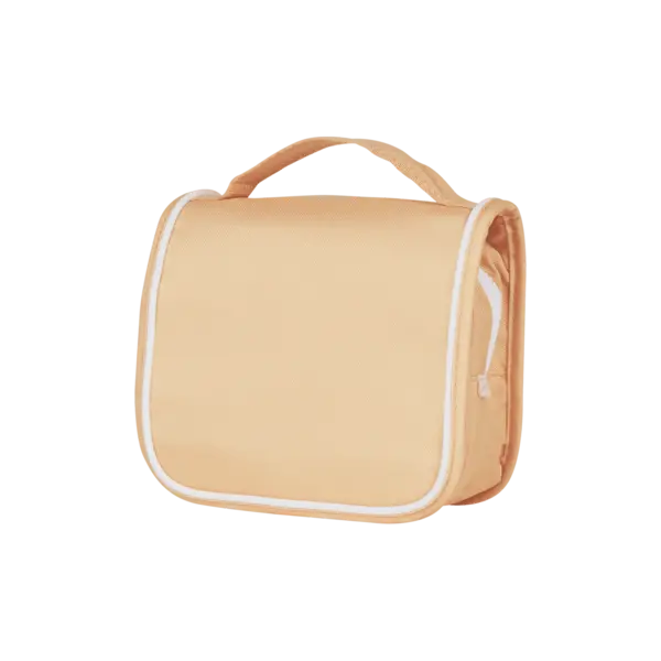- L'extérieur de la trousse de toilette est en tissu résistant à l'eau, en PET recyclé et avec des finitions en laiton.