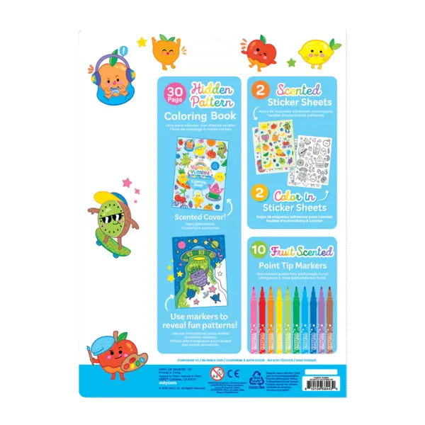 Pourquoi se contenter de l'ordinaire quand on peut avoir l'extraordinaire ? Le kit de coloriage parfumé Yummy Yummy pour enfants regorge de petits extras amusants pour garder votre petit artiste heureux, diverti et inspiré. Ce kit portable tout-en-un contient 10 crayons parfumés aux fruits, plus de 100 autocollants parfumés et un livre de coloriage caché de 30 pages rempli de surprises à découvrir. C'est comme une fête fruitée dans une boîte !