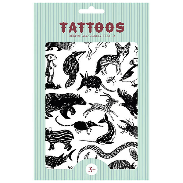 Ces tatouages Animaux Noirs sont de superbes tatouages temporaires pour enfants. 2 feuilles de tatouages avec de beaux animaux noirs illustrés par Marion Billet, connus des livres pour enfants. Découpez les tatouages et appliquez-les sur la peau avec un chiffon humide. Tatouages sûrs pour enfants, testés dermatologiquement. Il est préférable d'enlever avec un peu d'huile pour bébé.