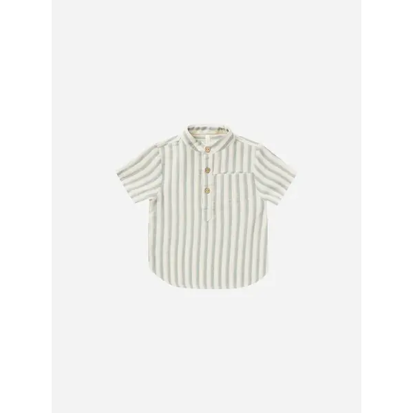 Mason est une chemise classique avec un col mandarin, une fermeture à bouton sur le devant, une poche sur la poitrine et des manches courtes.