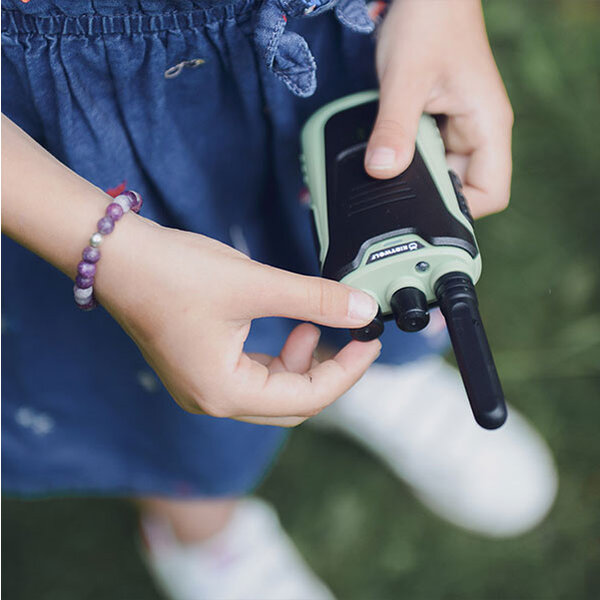 Avec les talkies-walkies Kidywolf Kidytalk green-orange, petits et grands sont prêts pour de grandes aventures! Avec une portée de 6 km, vous pourrez les utiliser pour jouer dehors ou pour poursuivre une conversation secrète à distance. Ces radios disposent de leurs propres batteries rechargeables pour des heures de conversations. Avec ces talkies-walkies, vous pourrez vivre l'aventure tout en restant en contact.