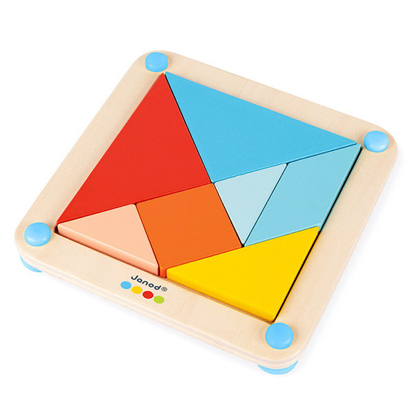 Avec ce tangram Essentiel, les enfants apprennent à combiner des pièces et à créer différentes formes telles que des animaux, des symboles, des objets et bien plus encore. Ce jeu de tangram se compose de 7 pièces, 25 cartes avec des défis et 2 niveaux de difficulté. Les jeunes enfants apprennent à copier le côté coloré, les enfants plus âgés qui sont plus expérimentés, le côté noir. Ou laissez libre cours à votre imagination pour découvrir de nouvelles figures. La planche de tangram a des pattes antidérapantes en silicone pour plus de stabilité. Avec ce tangram, les enfants découvrent les formes et les couleurs, entraînent leur patience et leur concentration.