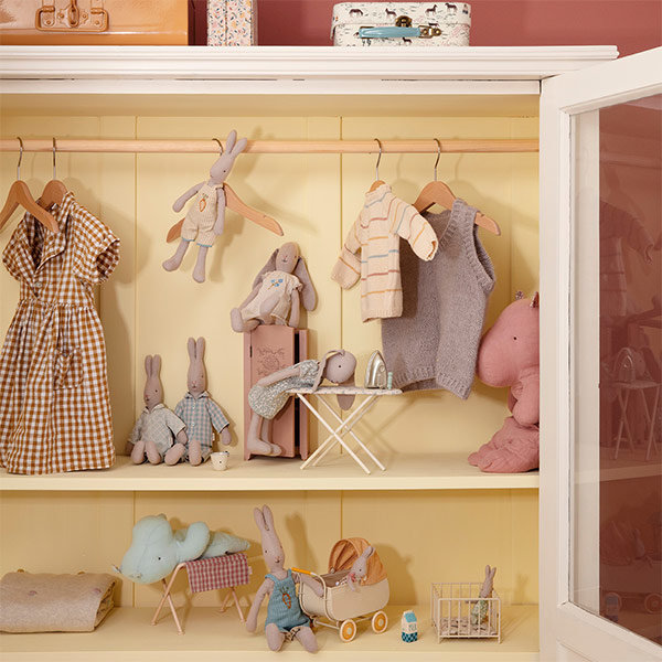 Avec ce thermos et tasses Soft Coral, les souris et lapins Maileg ont toujours du thé, du café ou du chocolat chaud avec eux lorsqu'ils sortent avec leurs amis pour une promenade, un pique-nique ou une excursion. L'ensemble se compose d'une bouteille thermos en métal avec un bouchon amovible et de deux tasses au magnifique look vintage.