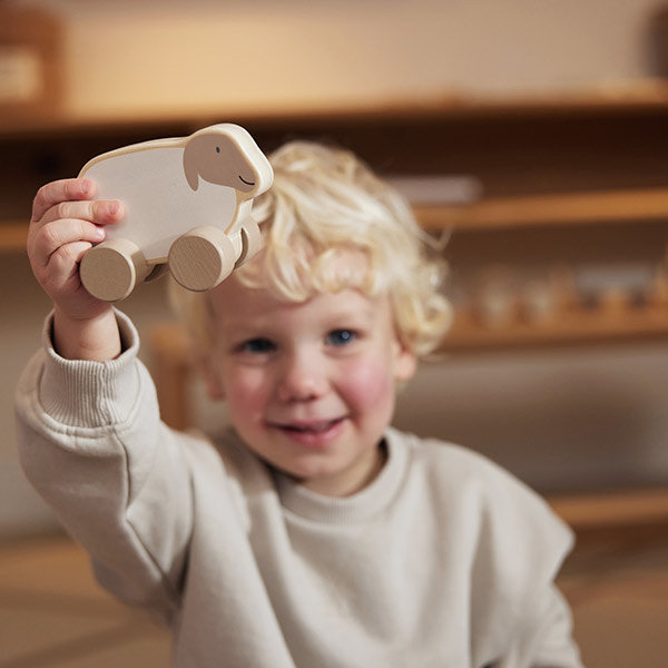 Cette voiture jouet en bois Lamb de la collection Jollein Farm est super amusante à jouer à la maison ou à emporter avec vous sur la route. Le jouet bébé est facile à tenir et convient parfaitement aux enfants à partir de 1 an. Aussi super sympa à offrir en cadeau (naissance).