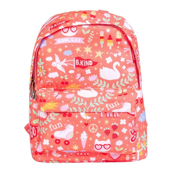 Dit rugzakje met Fun print heeft het perfecte formaat voor peuters. De ideale kinderrugzak voor een dagje in de opvang, school of een uitstapje. Dit lichtgewicht rugzakje heeft één groot compartiment met ritssluiting, een extra binnenvakje en een voorvak met ritssluiting. De kinderrugzak is afgewerkt met een extra gesp aan de voorkant zodat de verstelbare schouderbanden niet afzakken en een verstevigde, gewatteerde rug voor extra draagcomfort.
