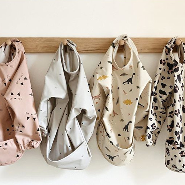 Maar ook hebben ze een serieus aanbod aan slabbetjes. Gaande van de kleine zever slab, de XL slab, de XXL slab en vervolgens hét slabbetje om gegarandeerd de kleertjes zuiver te houden; de slab met mouwen.