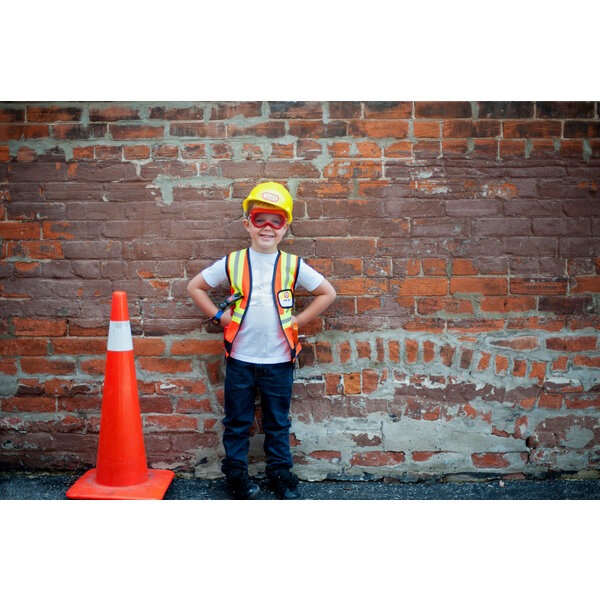 Met deze bouwset ben je klaar voor de klus en zie je er goed uit in deze complete 7-delige verkleed- en speelset. Deze set bevat een oranje vest met reflecterende strepen, een helm met sticker, een plastic hamer, een plastic minizaag, een plastic schroevendraaier, een veiligheidsbril en een naamplaatje zodat iedereen op de bouwplaats weet wie je bent. Al onze Great Pretenders Carrièrekostuums zijn verpakt in een herbruikbare blauwe kledingzak voor gemakkelijk opbergen.