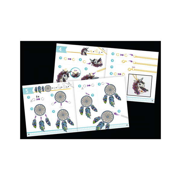 - Inhoud: 4 vellen krimpfolie met voorgesneden vormen, 9 kleurpotloden, ringen, kettinkjes, sluitingen... In kleur geïllustreerde handleiding.