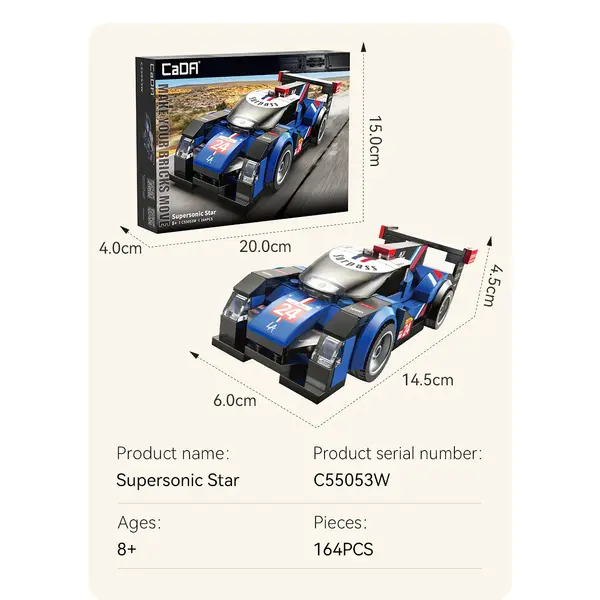 Kenmerken Van Deze CaDA | 1:32 Car Series - Supersonic Star 164 Stuks Schaal 1:32: