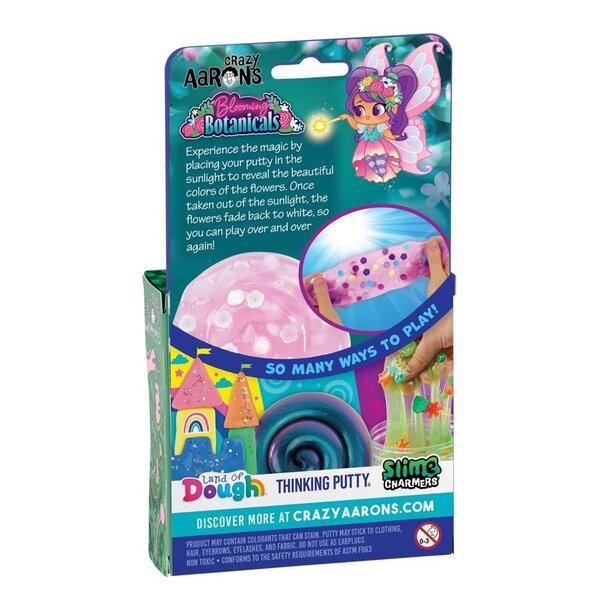 Blooming Botanicals Thinking Putty is anders dan alles wat je ooit hebt gezien! Houd deze klei in het zonlicht en zie hoe de bloemen in kleur bloeien. De zachte bloemenabsorberen het zonlicht en veranderen onmiddellijk van wit naar roze, blauw of paars. Haal ze uit het licht en ze vervagen weer naar wit, zodat je er steeds opnieuw mee kunt spelen!