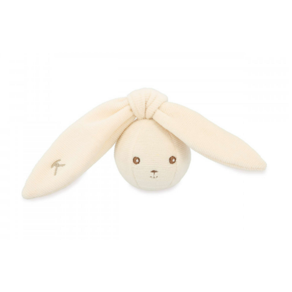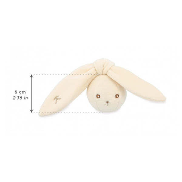 De crèmekleurige konijnenrammelaar van 5,9 cm is zacht en gemakkelijk vast te pakken voor kleine handjes. Er zit een belletje in, dat peuters kan stimuleren tijdens het spelen. Dankzij de grote konijnenoren kun je de rammelaar gemakkelijk bevestigen aan een kinderwagen, wieg, wieg of luiertas, zodat je je baby overal mee naartoe kunt nemen. Deze bal is een must-have om baby's vanaf de geboorte te vermaken. Machinewasbaar op 30°.