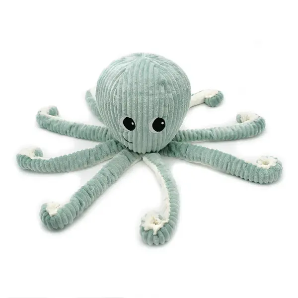 De 45 cm grote octopus moeder en baby pluche knuffel is mintkleurig en zacht.