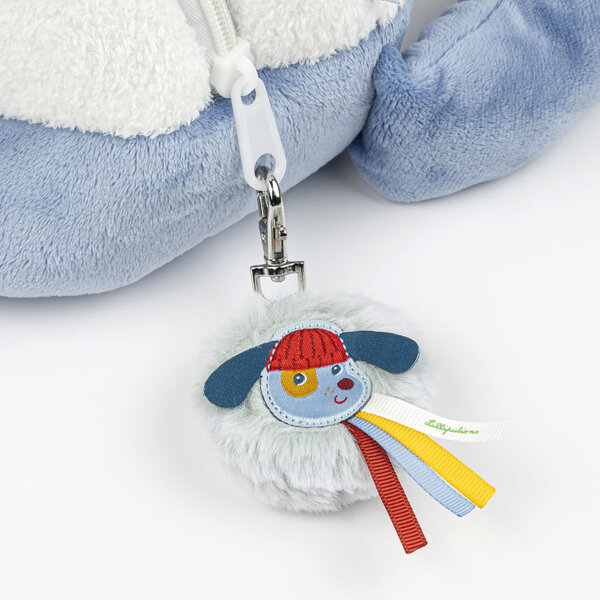 De sleutelbos van je kleintje! Vanaf de leeftijd van 1 jaar versieren kinderen hun tas, etui of een ander favoriet object in de kleuren van Jules de hond. Perfect om een vleugje stijl aan je sleutels toe te voegen, maar niet alleen, deze zachtblauwe sleutelhanger is een geweldig cadeau-idee! Men houdt van de grote oren, de vacht (polyester) en de linten van deze hondensleutelhanger. Met zijn praktische metalen clip en zijn formaat van 6 x 12 cm is hij een must-have om de bezittingen van de kleintjes in een oogwenk te identificeren! Jules kon hen dan overal vergezellen. Want ja, deze kleine hond heeft een passie voor de luchtvaart en gaat nooit de wijde wereld verkennen zonder een accessoire naar zijn beeld! Kinderen vinden het geweldig om hetzelfde te doen en een stijlstatement te maken als ze opgroeien. Dankzij deze mooie lilliputtiaanse bedel kunt u de tas voor de crèche of school van uw kind personaliseren met de beeltenis van zijn favoriete personage... Of je eigen uitzet, die je alleen voor jezelf houdt!