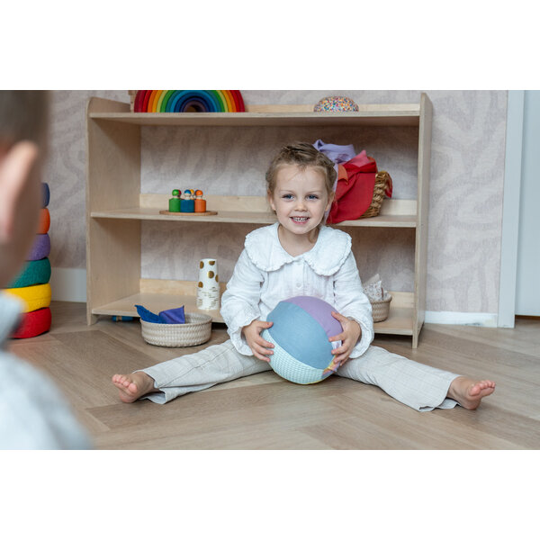 De hoes bestaat uit zeven verschillende stoffen, van glad linnen tot zachte rib. – De kleuren sluiten mooi aan bij de pastel pittenzakjes, wat dit product een mooie aanvulling maakt op elk open einde of sensorisch speelgoedassortiment.