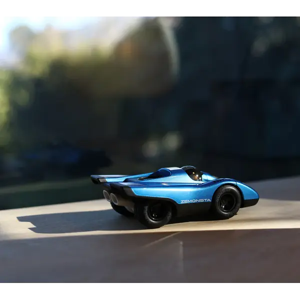 Houd je oren dicht, Zemonsta draait op volle toeren en zelfs als hij stationair draait, krijg je al kippenvel. Er is weer een formidabele en woeste circuitverslinder gearriveerd en we denken dat Ken wel eens een beetje nerveus zou kunnen zijn (wij trillen ook). Geïnspireerd door de iconische Porsche 917 zijn wij bij Playforever aan de slag gegaan om het beest der beesten te abstraheren. Met alle ongetemde woede van de Zemonsta zullen we waarschijnlijk wat extra rijen Sunray-banden moeten inslaan voor de testdag. Zemonsta heeft honger, ga uit de weg of word verslonden.