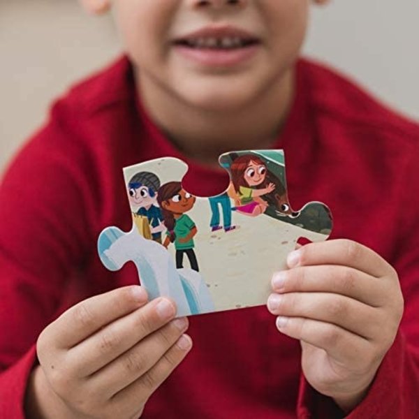 Prachtige puzzel met een Dag in het dino museum. Deze puzzel bestaat uit 48 puzzelstukken met veel details in mooie, levendige kleuren. Puzzelen stimuleert de fantasie en de cognitieve ontwikkeling.