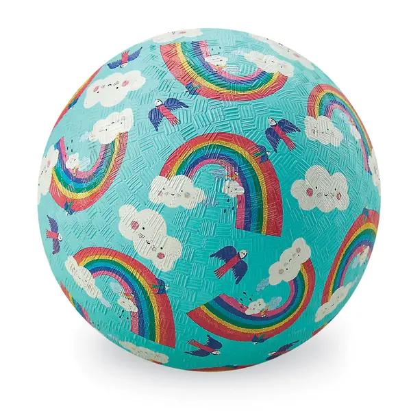 Mooie speelbal van 13cm of 18cm met prachtig regenboogdromen design. Deze bal is gemaakt uit stevig rubber, vrij van PVC, BPA en vinyl. Door de structuur hebben kleine handjes een goede grip op de bal om te spelen en hem vast te nemen. Deze leuke speelbal staat garant voor uren speelplezier!