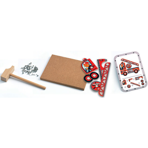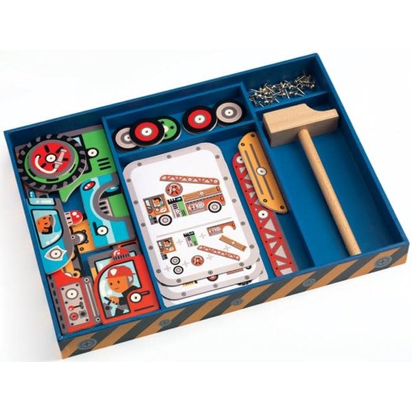 Djeco hamertje tik voertuigen is een super leuke speelset die bestaat uit een zachte plaat, een houten hamer, spijkers en diverse onderdelen waarmee verschillende voertuigen gecreëerd kunnen worden. Deze leuke hamertje tik speelset van Djeco wordt geleverd in een handige opbergbox en is voorzien van voorbeeldkaarten. Geschikt voor kinderen vanaf 4 jaar. Uren speelplezier gegarandeerd!