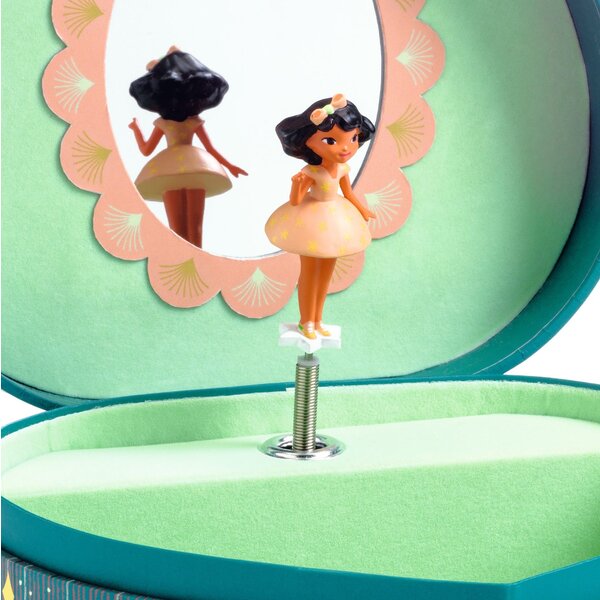 Deze hartvormige juwelendoos Happy Party is tevens een prachtig muziekdoosje. Wind deze muziekdoos op aan de achterzijde en het meisje begint spontaan rond te draaien op de tonen van de muziek bij het openen van het juwelenkistje. Het is een prachtig geïllustreerde juwelendoos met een praktisch groot opbergvak voor al jouw juwelen. Bewonder jezelf in de mooie spiegel binnen deze juwelendoos. Meisjes maken zich gezellig mooi, op de tonen van dit betoverende muziekdoosje.