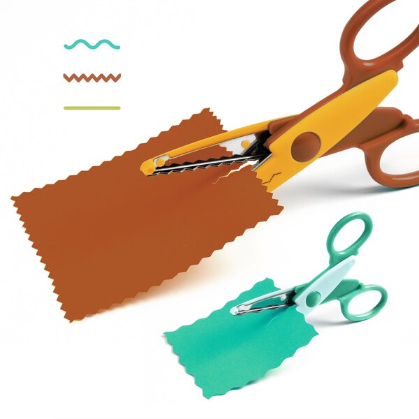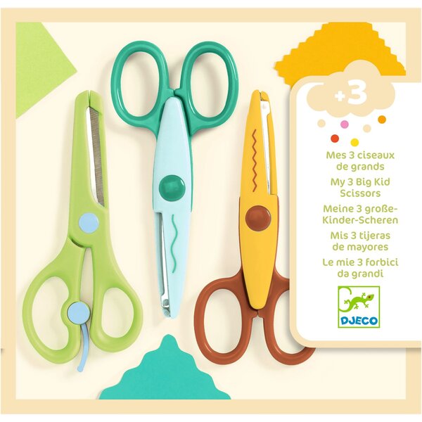 3 scharen voor 3 verschillende knipvormen: 1 voor rechte lijnen, 1 voor golvende lijnen en 1 voor kartelranden. Ideaal om de fijne motoriek te oefenen, de verbeelding te stimuleren en creaties te variëren!