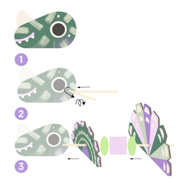 - Veel elementen om mee te werken: chenilledraad, houten kralen en voorgesneden karton.