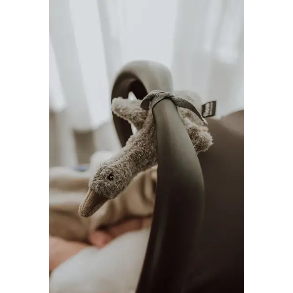 De comforter on the go is een smallere versie om makkelijk met je mee te nemen. Een knuffel met muziekdoosje die er voor zorgt dat je kindje zich veilig en kalm voelt onderweg. Je kunt het knuffeltje makkelijk bevestigen aan je Maxi Cosi of kinderwagen met het touwtje. Het muziekdoosje komt met 2 geluiden: Hartslag en witte ruis. Met een knop kun je het muziekdoosje aanzetten, het volume aanpassen en het geluid kiezen. Omdat de knop extra groot is, is hij makkelijk te bedienen, zelfs als hij in de knuffel zit.