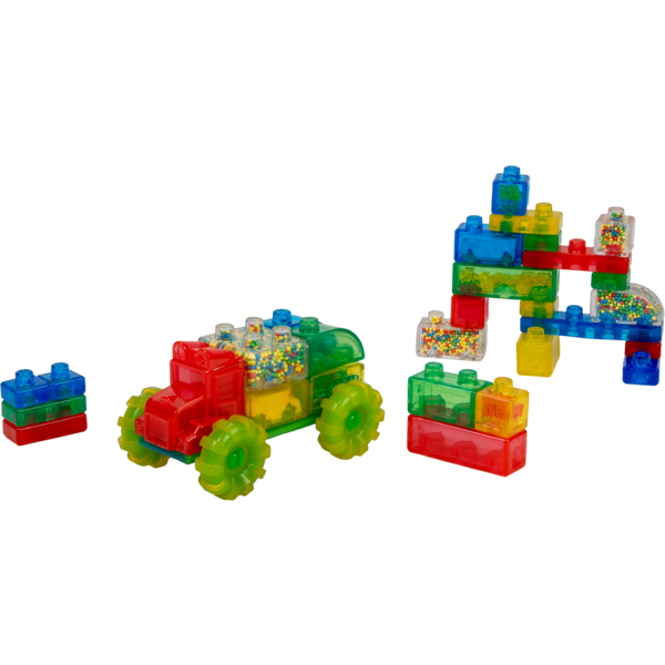 Laat de verbeelding van kinderen tot leven komen met Jelly Blox Vehicle Kit! Met de Jelly Blox Vehicle Kit kunnen kinderen niet alleen bouwen, maar ook kunnen ze er in knijpen en zelfs platdrukken. Sommige blokken zijn gevuld met materialen zoals zand, blokjes of schuimballetjes die de zintuigen stimuleren en de sensorische tactiliteit bevorderen. Met deze set kan je een mooie wagen bouwen.