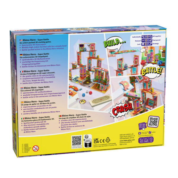 Rhino Hero en zijn superheldenvrienden zijn weer op missie en beklimmen wankele wolkenkrabbers. In keiharde gevechten strijden ze om de beste plek op de wolkenkrabbers. Wie zich niet laat irriteren door de Spider Monkeys en met een vaste hand en geluk met de dobbelstenen de hoogste verdieping bereikt, wint.