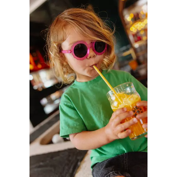 De Chamy Fuchsia zonnebril van Hello Hossy is met zijn frisse, zonnige en veelzijdige kleuren de ideale kinderzonnebril voor zonnige dagen en seizoenen. De zonnebril beschermt de ogen van je kind tegen ultraviolette straling en zorgt voor 100% UV bescherming - UV400 categorie 3. Zowel jongens als meisjes tussen 2-3 jaar, 3-5 jaar en 5-8 jaar kunnen deze geporaliseerde kinderzonnebril tijdens de zomer en winter dragen. De zonnebril zit comfortabel, is hip, flexibel, licht, kleurrijk en voelgt heel aangenaam aan dankzij de matte structuur. Hello Hossy heeft gekozen voor gepolariseerde Tri Acetate Cellulose (TAC) lenzen om het visuele comfort van kinderen te verbeteren en om te voorkomen dat ze verblind worden door de weerkaatsing van licht; ongeacht de gebruikscontext en de tijd van het jaar.