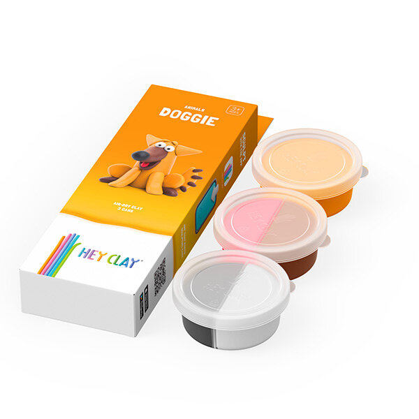 Met deze set bestaande uit 3 potjes boetseerklei van Hey Clay, boetseer je aan de hand van de bijhorende app een vrolijke hond. Boetseren was nog nooit zo leuk en gemakkelijk! Volg de eenvoudige instructies via de animaties op de app om de personages tot leven te laten komen. De app toont stap voor stap welke kleuren er nodig zijn en hoe de losse onderdelen te boetseren. Met de kleuren op de verpakking maak je alle personages uit de set. Een deel van de klei blijft over voor hergebruik en bewaar je in een afgesloten doosje tegen uitdroging.