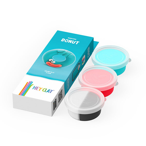 Met deze set bestaande uit 3 potjes boetseerklei van Hey Clay, boetseer je aan de hand van de bijhorende app een vrolijk monster Donut. Boetseren was nog nooit zo leuk en gemakkelijk! Volg de eenvoudige instructies via de animaties op de app om de personages tot leven te laten komen. De app toont stap voor stap welke kleuren er nodig zijn en hoe de losse onderdelen te boetseren. Met de kleuren op de verpakking maak je alle personages uit de set. Een deel van de klei blijft over voor hergebruik en bewaar je in een afgesloten doosje tegen uitdroging.