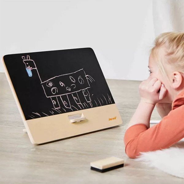 - Inhoud: 3 krijtjes, 1 schoolbordborstel, verwijderbare voet