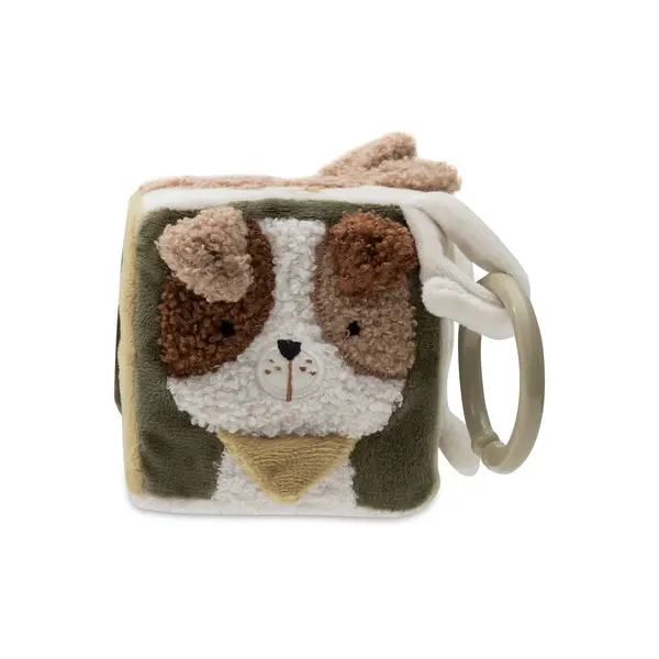 Deze zachte activiteitenkubus uit de Tiny Park collectie is een betoverend speeltje voor je kleintje. Met schattige dieren zoals een kat, hond en uil en interactieve elementen zoals knisperende oortjes en een spiegel, stimuleert het de zintuigen en motorische ontwikkeling van je baby. Een vrolijke en leerzame kubus, perfect voor urenlang speelplezier in de box of onderweg!​