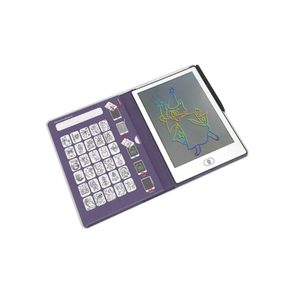 Geef je kind een grenzeloze tekenervaring met onze digitale tekentablet KIDYDRAW-MINI. Ontworpen om creativiteit te stimuleren en zelfstandig tekenen te bevorderen. Dit tekenboek met LCD-scherm is de perfecte metgezel voor jonge kunstenaars. Elke tablet heeft een eigen thema uit de 5 beschikbare en bevat 30 tekeningen om te overtrekken met een speciale pen. Licht en compact, het past gemakkelijk in elke tas, zodat je kind overal kan tekenen.