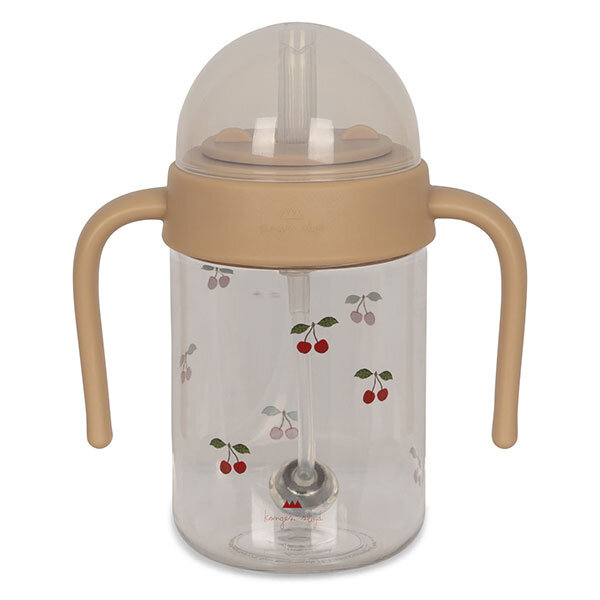 Deze schattige drinkfles met handvat en rietje in prachtig Cherry design is ideaal voor je kindje om uit te drinken. De drinkfles is gemaakt van stevig tritan, afgewerkt met een buigzaam siliconen rietje en handig vast te houden aan de handgrepen. Een praktisch drinkflesje om gemakkelijk mee te nemen onderweg.