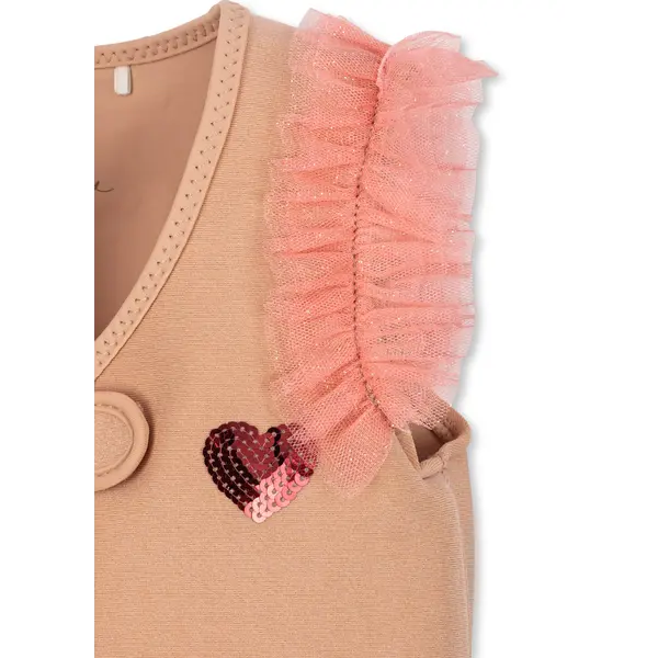 Glitter drijfvest met tule schoudervullingen en seqwuin details. Een drijfvest is het perfecte zwemaccessoire als je kleintjes net beginnen met spetteren. Het voegt natuurlijk drijfvermogen toe en helpt ze om zich op hun gemak te voelen in het water terwijl ze zelfstandig leren zwemmen. Deze drijfvesten zijn ontworpen met schuimrubberen sticks aan de binnenkant die kunnen worden aangepast aan de vaardigheden en behoeften van het kind. De drijfstokken kunnen gemakkelijk één voor één worden verwijderd naarmate je kind zijn zwemvaardigheden ontwikkelt. Verwijder de sticks altijd per twee, te beginnen met 1 & 1, dan 2 & 2 enzovoort tot je kind volledig aangepast is aan het zelfstandig zwemmen. Zodra het kind veilig en comfortabel in het water ligt, kunnen de drijfstokken helemaal worden verwijderd. Ontworpen met zowel rits- als klittenbandsluiting. Voorzien van een veiligheids kruisband met gesp, zodat je kind nooit uit het vest kan glippen.