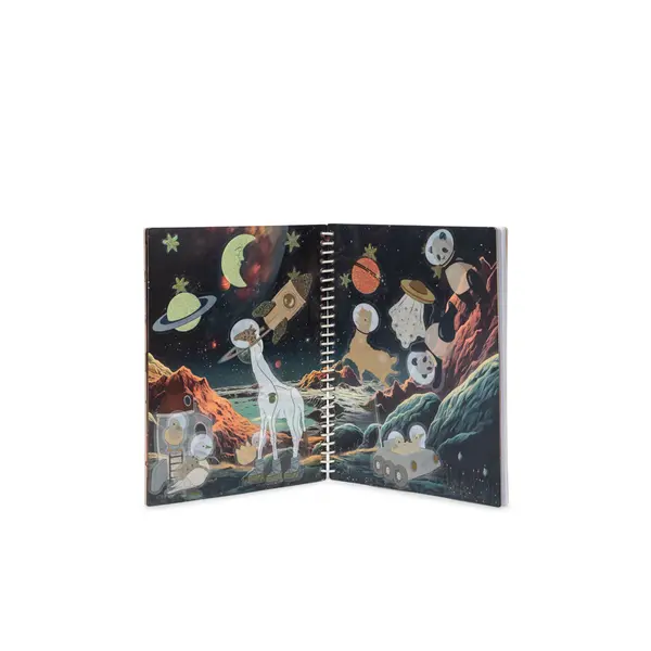 Leuk stickerboek met herbruikbare stickers. Bevat 8 verschillende pagina's met verschillende werelden en universums. Ga creatief aan de slag met de verschillende stickers.