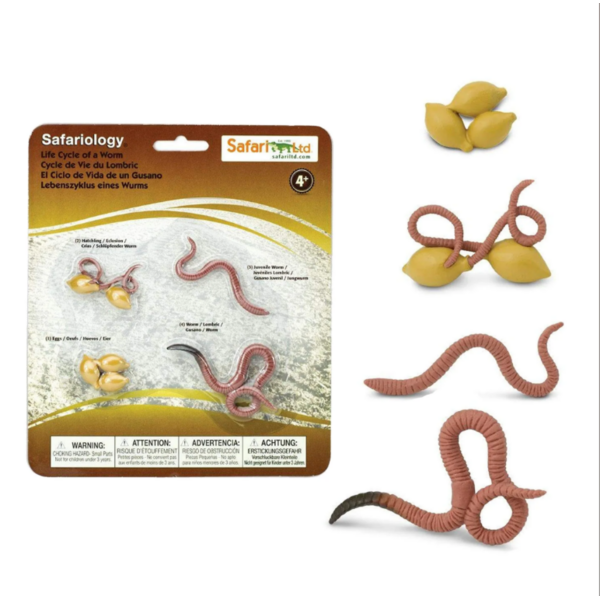 Benieuwd naar de levencyclus van een worm? Met deze educatieve speelset leren kinderen het eenvoudig en spelenderwijs. De figuren tonen de vier stadia van een verrassend complex wezen. Hun citroenvormige eieren baren jongen, die langzaam uitgroeien tot juvenielen. Maanden later worden het volwassen wormen die de cyclus opnieuw kunnen beginnen.