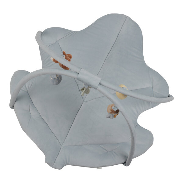 Zoveel te zien, te voelen en te horen! Elke dag is een nieuw avontuur met dit bladvormige speelkleed. Het blauwe kleed heeft twee grote corduroy bogen waar vijf verschillende knuffeltjes uit de Forest Friends collectie aan hangen. Het lieve vosje, de wijze uil, gele en blauwe paddenstoel en het blaadje helpen je kindje bij het ontwikkelen van sensorische vaardigheden en stimuleren de hand-oogcoördinatie.