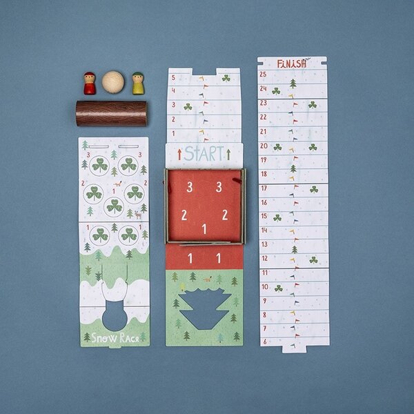 Een racespel voor 2 spelers vanaf 4 jaar. Wie het snelst de finish bereikt, wint de race! Een duurzaam spel gemaakt van karton en hout. Gemaakt in Barcelona.
